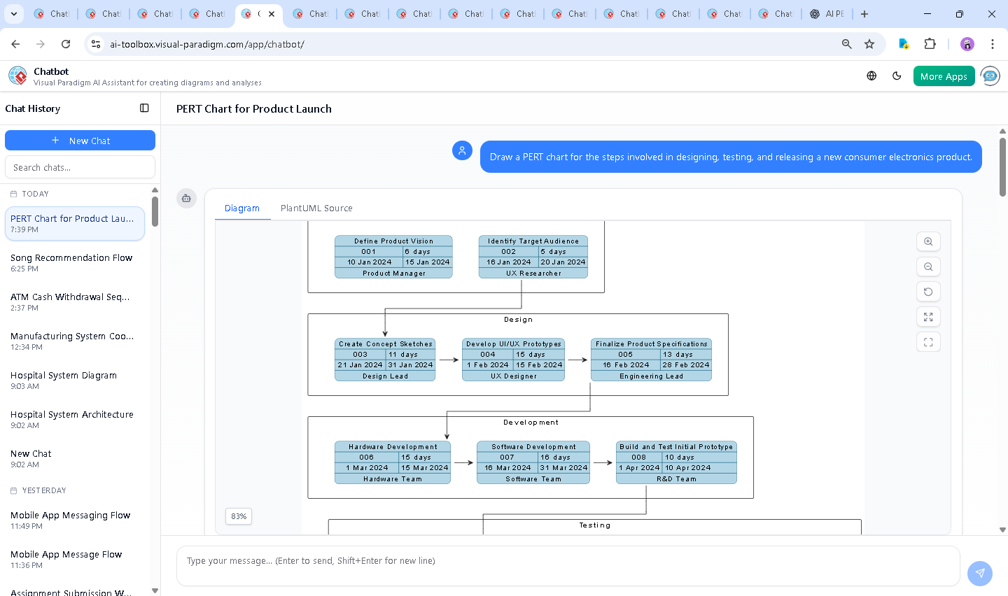 Creating a PERT chart for a consumer electronics product launch isn’t just about drawing boxes and arrows. It’s about building a shared understanding of timelines, dependencies, and responsibilities. With the Visual Paradigm AI Chatbot, that process becomes collaborative, intelligent, and deeply insightful.