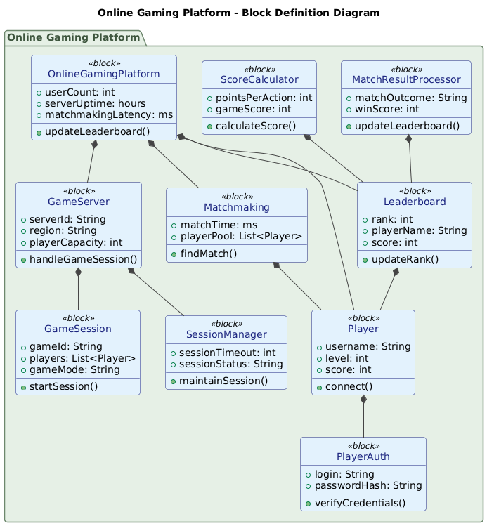 Designing the Backbone of Online Gaming: An AI-Generated SysML Block Definition Diagram