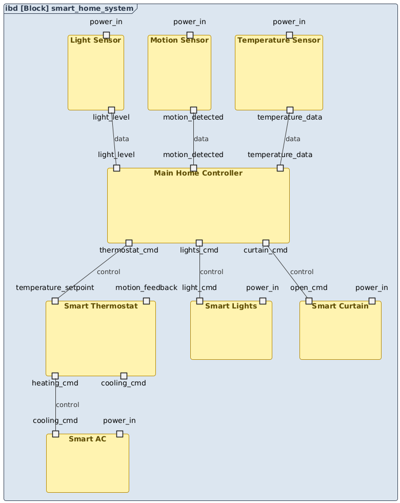 Building a smart home isn’t just about wiring devices. It’s about creating a system that thinks, reacts, and learns. The SysML Internal Block Diagram generated here is more than a diagram—it’s a blueprint for intelligent automation.